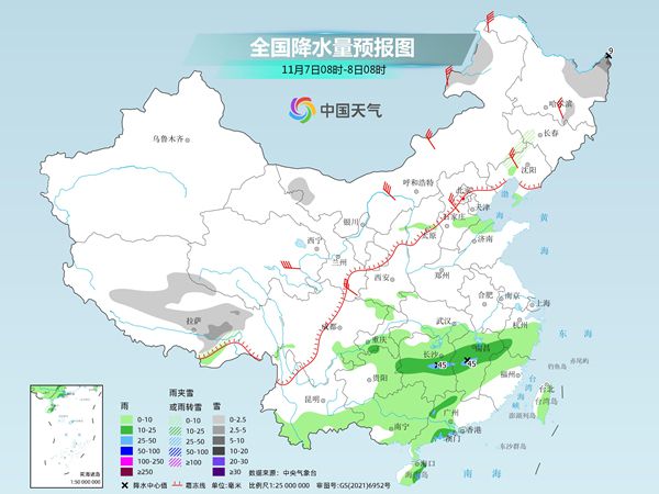 中国天气网讯 今天(11月7日),东北的降雪逐渐进入间歇,明天降雪又会发展,部分地区有大到暴雪,东北近期降雪频繁,需注意防范。江南等地未来三天降雨增多,明后天部分地区有大到暴雨。气温方面,本周还将有两股冷空气影响我国,本周后期中东部多地气温将再创下半年来新低,公众请注意保暖。