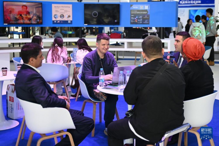 11月7日,“互联网之光”博览会境外展区的参展商代表在洽谈区交流。 新华社记者 黄宗治 摄