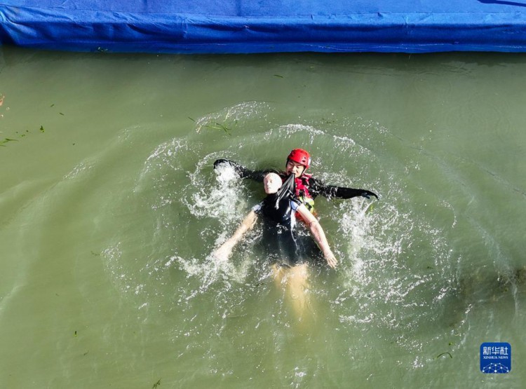 11月8日,消防员在南京玄武湖参加水域救援比赛(无人机照片)。