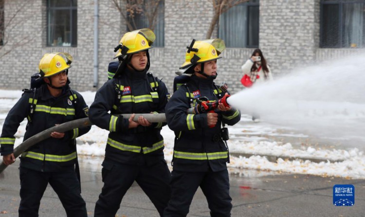 11月8日,在沈阳工学院,消防救援队员进行演练。
