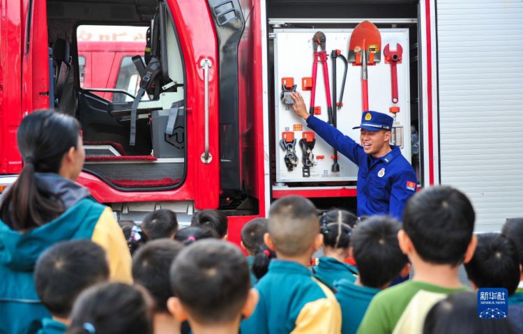 11月8日,在贵州省黔东南苗族侗族自治州从江县消防救援大队,消防救援人员给小朋友普及消防知识。 11月9日是第32个全国消防日,今年的活动主题为“预防为主,生命至上”。 新华社发(卢忠南 摄)