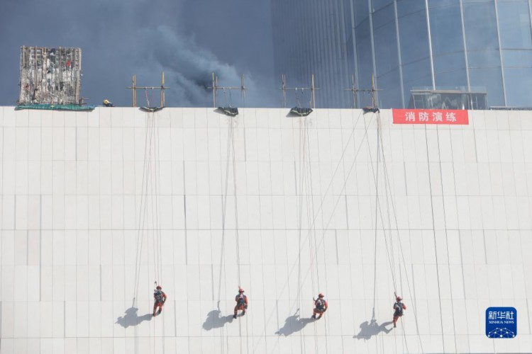 这是11月8日拍摄的高层建筑灭火救援实战演练现场。