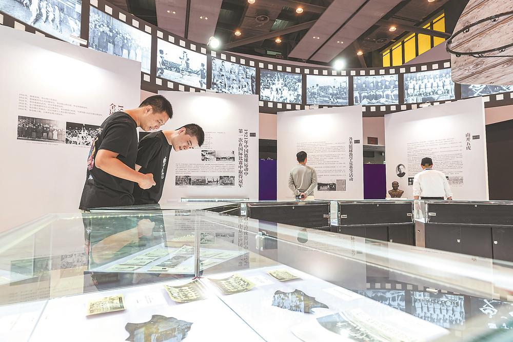 中国篮球文化展是篮博会一大亮点。展览通过十大板块,呈现了篮球运动自1895年传入我国以来的发展历程,记录了中国篮球发展史中的里程碑事件。“中国篮球名人堂”专区原景重现了今年4月在天津举办的首届中国篮球名人堂的入选仪式现场,观众可一睹首届名人堂嘉宾手模、入堂仪式礼服等具有纪念价值的展品。