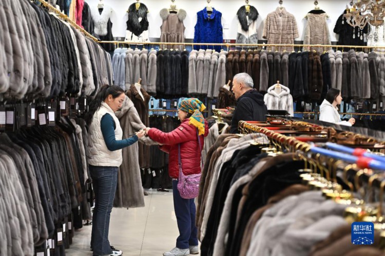 11月8日,游客在中哈霍尔果斯国际边境合作中心中方区域选购服装。 位于新疆伊犁哈萨克自治州霍尔果斯市是“一带一路”上的重要陆路通道,也是中国向西开放的重要窗口。 霍尔果斯公路口岸通关数据报告显示,今年出入境车辆已从1月的不到5000辆增长到现在每月3万多辆。在霍尔果斯铁路口岸,一列列“钢铁驼队”在这里日夜集结,源源不断驶向远方。霍尔果斯海关数据显示,今年1月至10月,霍尔果斯铁路口岸通行中欧(中亚)班列6433列,同比增长9.8%。 新华社记者 李鑫 摄