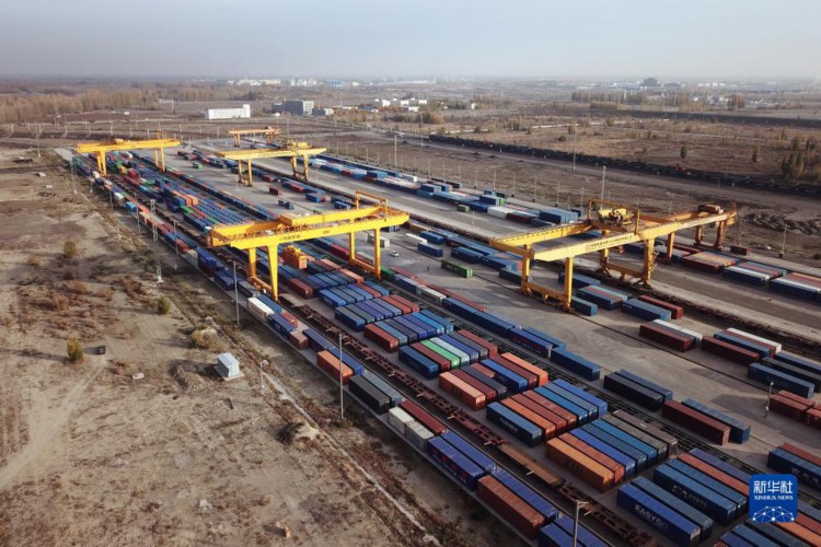 这是霍尔果斯综合保税区(无人机照片,11月8日摄)。 位于新疆伊犁哈萨克自治州霍尔果斯市是“一带一路”上的重要陆路通道,也是中国向西开放的重要窗口。 霍尔果斯公路口岸通关数据报告显示,今年出入境车辆已从1月的不到5000辆增长到现在每月3万多辆。在霍尔果斯铁路口岸,一列列“钢铁驼队”在这里日夜集结,源源不断驶向远方。霍尔果斯海关数据显示,今年1月至10月,霍尔果斯铁路口岸通行中欧(中亚)班列6433列,同比增长9.8%。 新华社记者 李鑫 摄