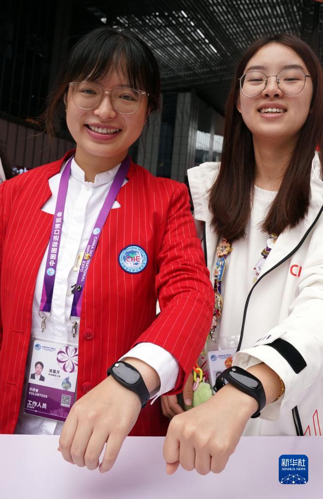 11月9日,志愿者展示服务保障组为“小叶子”们配发的数字化管理终端(智能手环)。该平台依托智能手环,通过动态监测和可视化显示,对志愿者进行数字化管理,为志愿者提供精心保障。