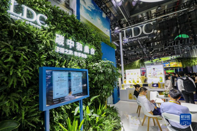 11月9日,观众在参观食品及农产品展区的路易达孚“碳中和”展台。