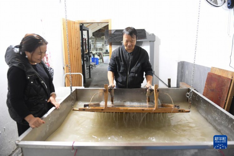 11月9日,工作人员在开化纸传统技艺工坊制纸。 新华社记者 翁忻旸 摄