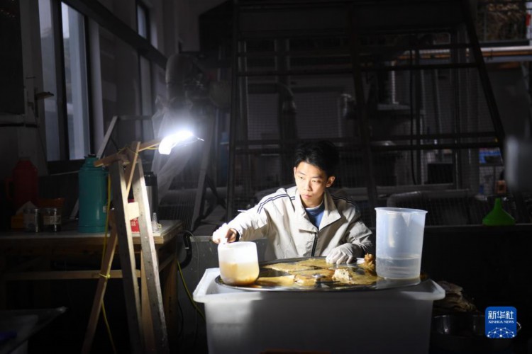 11月9日,在开化纸传统技艺工坊,黄宏健搬运制作开化纸的原料——荛花。 开化纸产自浙江省的开化县,制作始于明代,纸张薄如蝉翼却坚韧挺括,可保存千年。开化纸的品质在清末开始衰退,制作技艺在近代失传。近年来,开化人黄宏健持续探索制纸技艺,试图“复活”开化纸。 2010年前后,黄宏健偶然听说省级非遗项目开化纸便产生了浓厚兴趣,他关掉经营的饭店,走访江西、福建、安徽、浙江的古村落跟老匠人请教,并阅读植物学、化学书籍,翻阅府志县志,试图寻觅开化纸“复活”的密码。2015年,复旦大学六个学科专业人员组成的团队进驻黄宏健的工作室,并由中国科学院院士杨玉良牵头成立了院士专家工作站,开化县政府也对研究拨付了专项经费。2016年底,开化纸纸样和理化指标已接近古纸水平,随后团队先后攻克了修缮用纸、典籍用纸、版画用纸等制作工艺。现在开化纸已申报了6项发明专利,细分出20多个品类,每年产量两三万张,生产出的纸被中国国家图书馆和国家版本馆杭州分馆定制采购,用于古籍的修复保护。 “中国是造纸术的故乡,我制作开化纸一开始出于好玩,后来逐渐感到肩头沉甸甸的责任”,黄宏健说,未来几年他计划继续探索现代设备和古代工艺的融合,确定工艺标准,为批量化造纸做准备。 新华社记者 翁忻旸 摄
