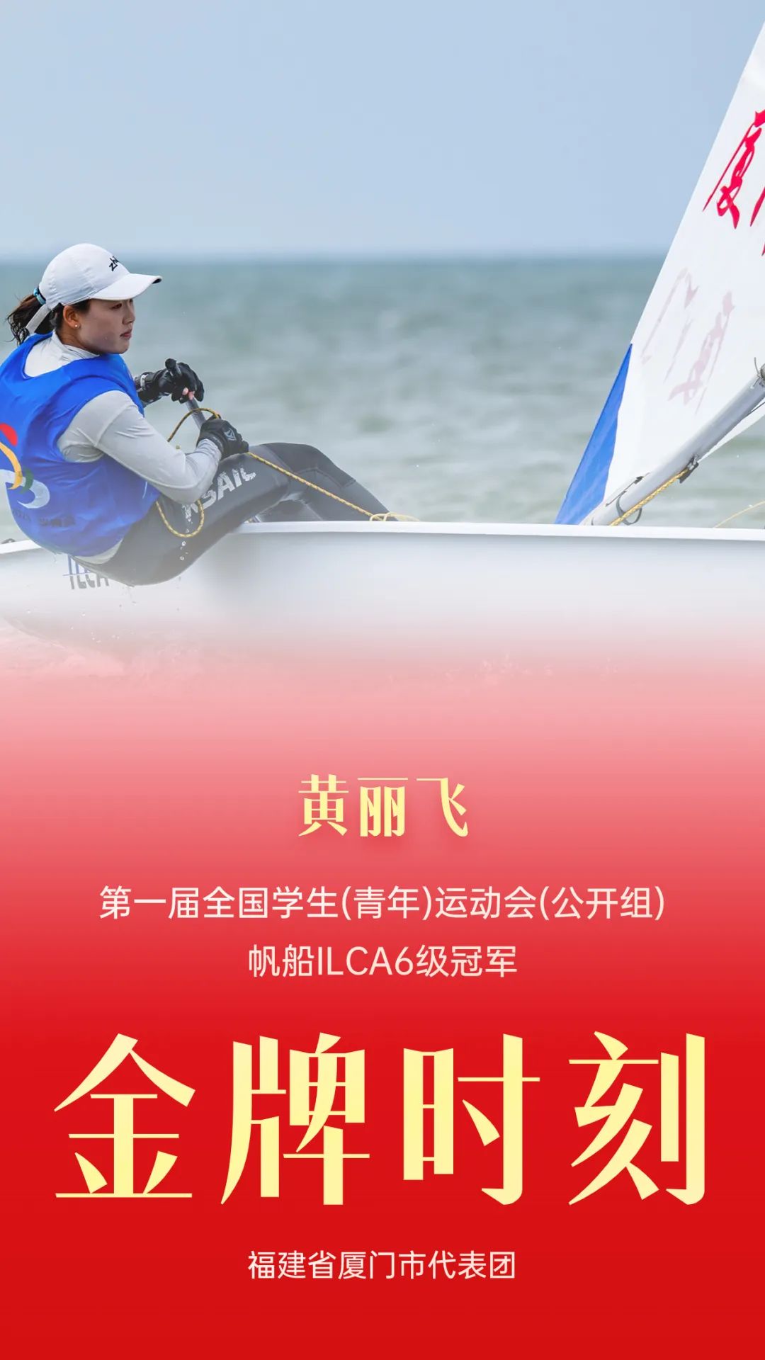 11月13日,在第一届全国学生(青年)运动会(公开组)帆船比赛项目中,代表福建省厦门市参赛的运动员黄丽飞夺得帆船女子ILCA6级冠军,这也是福建在本届学青会(公开组)取得的第28枚金牌。