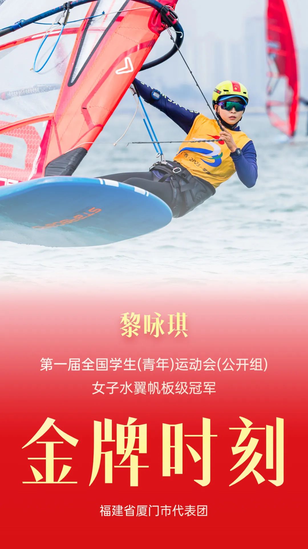 11月13日,在第一届全国学生(青年)运动会(公开组)帆船比赛项目中,代表福建省厦门市参赛的运动员黎咏琪获得女子水翼帆板级冠军,这也是福建在本届学青会(公开组)取得的第30枚金牌。