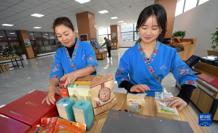 11月14日,在施秉县产业园区一家电商企业的展厅,直播平台的工作人员在整理农产品。 近年来,贵州省黔东南苗族侗族自治州施秉县结合资源优势,鼓励产业园区多家企业抱团发展电商产业,形成生产、加工、电商订单销售的产业链,积极帮助本地社区车间、微企业和农民销售电子、服装、农特等产品,助推“黔货出山”,带动农民增收。 据悉,目前施秉县已建成电商产业基地2个,打造电商直播间15个,以“产品+电商”形式帮助企业和农民直播带货。2023年1至9月,施秉县网络电商零售额达2505万元。 新华社记者 杨楹 摄