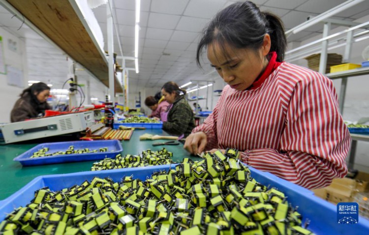 11月14日,工人在施秉县一家电子企业生产车间工作。 近年来,贵州省黔东南苗族侗族自治州施秉县结合资源优势,鼓励产业园区多家企业抱团发展电商产业,形成生产、加工、电商订单销售的产业链,积极帮助本地社区车间、微企业和农民销售电子、服装、农特等产品,助推“黔货出山”,带动农民增收。 据悉,目前施秉县已建成电商产业基地2个,打造电商直播间15个,以“产品+电商”形式帮助企业和农民直播带货。2023年1至9月,施秉县网络电商零售额达2505万元。 新华社发(袁福洪 摄)