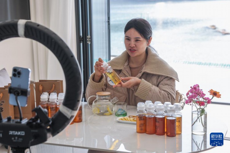 11月14日,在淳安县宋村乡一家民宿内,爱心人士正在为“淳蜜共富”活动进行网络直播,销售蜂蜜。 近期,浙江省杭州市淳安县100多户养殖中华蜂的低收入农户迎来了首个丰收季,甜蜜的蜂蜜成为了他们增收致富的重要来源。从今年5月开始,淳安县从关爱低收入农户,助力实现共同富裕出发,开展“之江同心·淳蜜共富”助农共富系列活动,进行“线上+线下”的助农直播带货。截至目前,“淳蜜共富”活动已经销售蜂蜜1500多斤,共为100多户低收入农户直接增收27.5万元。 新华社记者 徐昱 摄