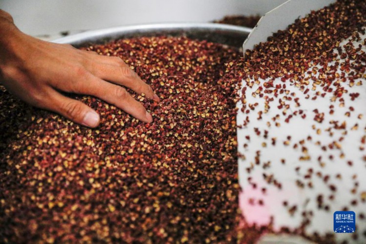 11月15日,在舟曲县电子商务公共服务中心,工作人员在整理筛选好的花椒。
