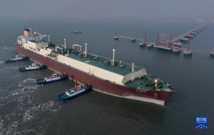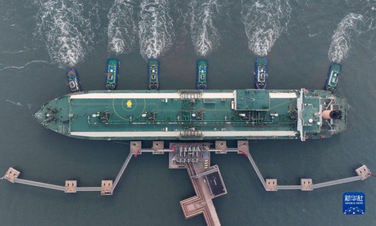 11月15日,来自卡塔尔的“阿尔达夫那”号LNG轮在拖轮的协助下向唐山港曹妃甸港区中国石油唐山LNG接收站码头靠泊(无人机照片)。 当日,来自卡塔尔、装载着26万立方米LNG(液化天然气)的“阿尔达夫那”号轮靠泊在河北唐山港曹妃甸港区中国石油唐山LNG接收站码头,这是今年入冬以来中石油唐山LNG接收站迎来的第一艘LNG轮船,标志着该LNG接收站2023年冬季向京津冀地区供气保障工作全面展开。据介绍,中国石油唐山LNG接收站作为海上进口气源重要通道,是国家石油天然气基础设施建设重点工程。 新华社记者杨世尧摄 |