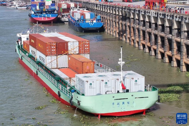 当日,汉江首艘纯电动集装箱示范船“华航新能1”在湖北武汉首航,由此开启汉江航运的电化时代。