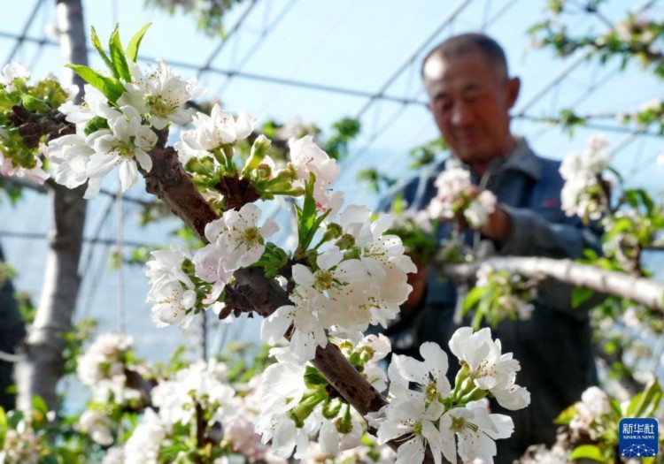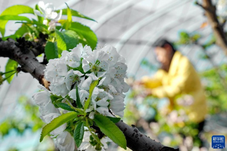 11月16日,河北省乐亭县丞起现代农业园区的工人在大棚内管护樱桃。 近日,河北省乐亭县丞起现代农业园区不同花期的樱桃树开花、结果,果农忙着管护、采摘,大棚内一派忙碌景象。近年来,乐亭县引导农民采取“合作社+农户”的模式种植大棚樱桃、桃、葡萄等果品,促进农民增收。 新华社记者 杨世尧 摄