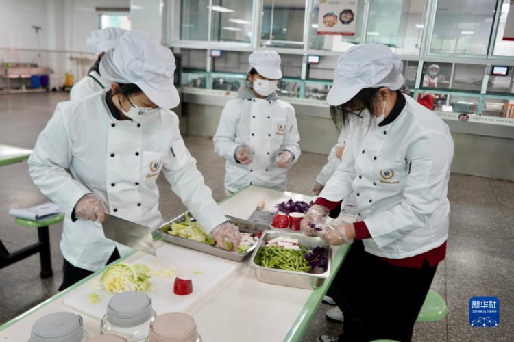 11月17日,香港筲箕湾官立中学与贵阳一中高二年级学生在贵阳一中食堂学习制作泡菜。新华社记者 褚萌萌 摄