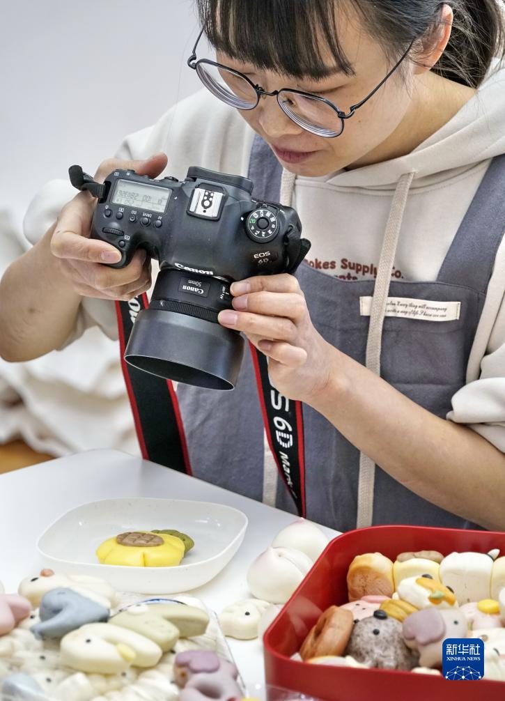 田晓在工作室拍摄面花产品(11月12日摄)。 新华社记者 李欣 摄