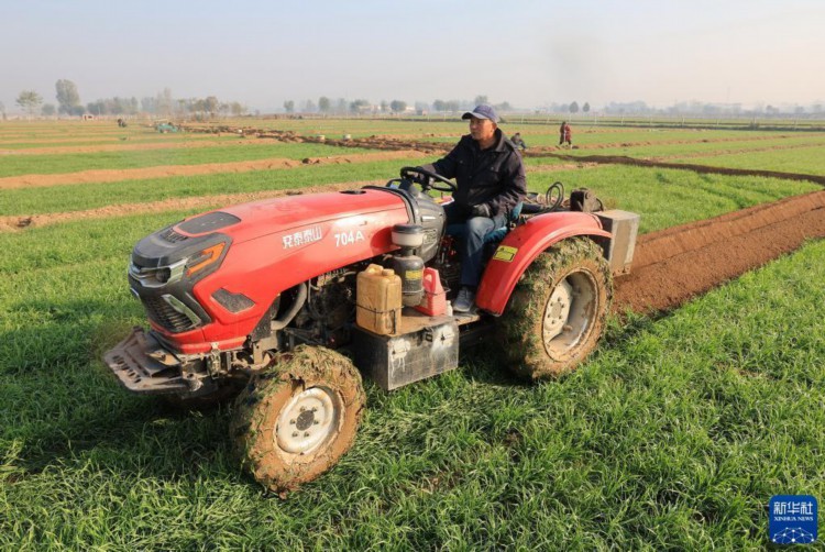 11月20日,农机手驾驶农机在河北省晋州市周家庄乡第七生产队的田间开沟,准备安装喷灌设施。 近日,河北省晋州市的农民利用冬闲时节在农田安装、检修节水喷灌设施,田间地头呈现出一派繁忙景象。近年来,河北省晋州市持续推进高标准良田建设,促进农业增产、农民增收。据介绍,目前该市建设高标准良田达33万亩。 新华社记者 杨世尧 摄