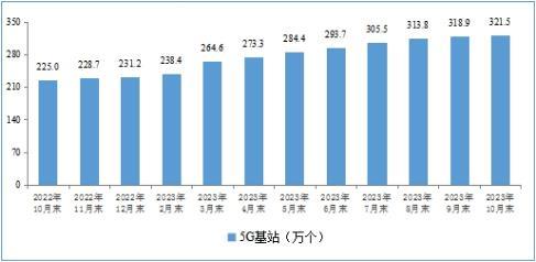5G网络建设稳步推进。截至10月末,5G基站总数达321.5万个,占移动基站总数的28.1%。