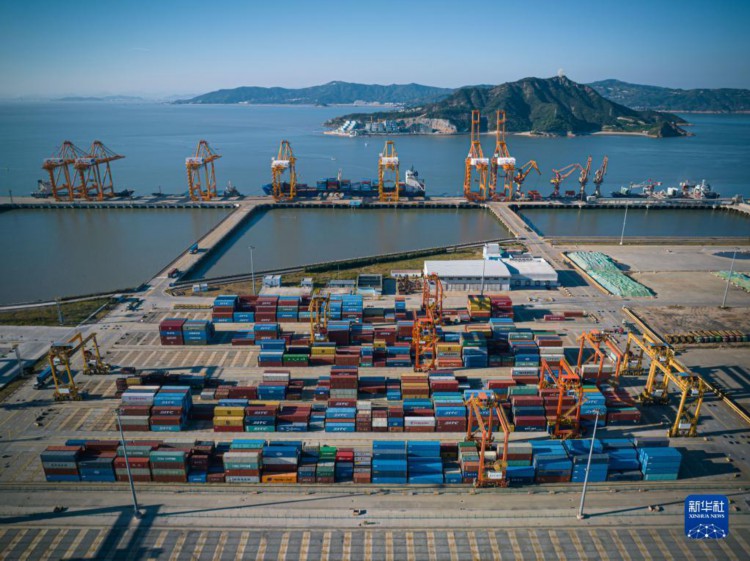 这是11月22日拍摄的温州港状元岙集装箱码头。 近年来,浙江省温州港通过完善港区内基础设施、提升港口开放能级、助力临港产业培育等措施,实现温州港港口货物吞吐稳步增长。截至2023年10月,温州港已完成货物吞吐量7236.96万吨,同比增长4.25%。 新华社记者 江汉 摄