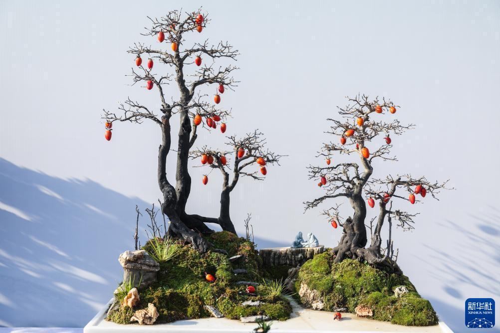 11月25日,第二十一届中国(金华)花卉苗木博览会上展示的盆景。