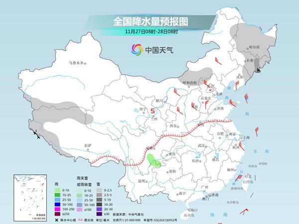 具体来看,中央气象台预计,今天,内蒙古东南部、东北地区大部、西藏西南部及昆仑山脉地区、山东半岛等地部分地区有小到中雪或雨夹雪,其中,吉林长白山区、西藏西南部局地有大雪(5~8毫米)。