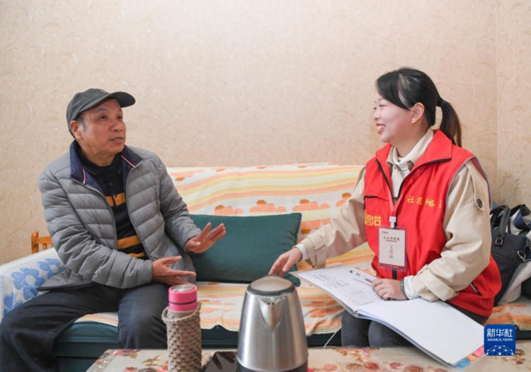 11月28日,余白杨在正街社区一户居民家走访。 新华社记者 王全超 摄
