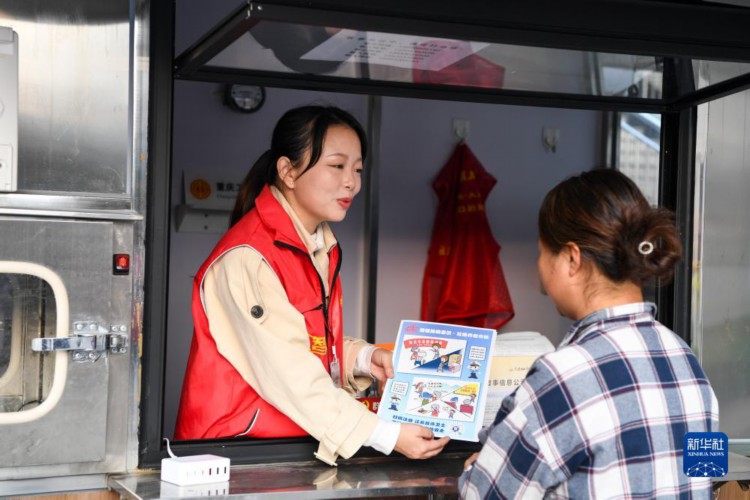 11月28日,余白杨(左)在正街社区向居民开展防诈宣传。 新华社记者 王全超 摄