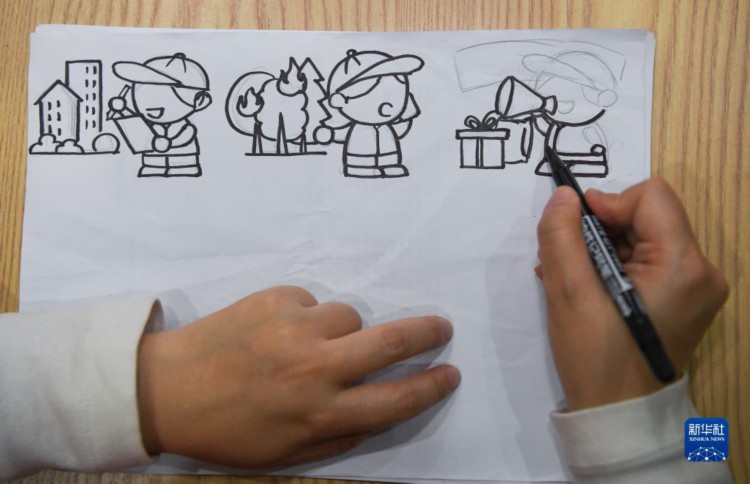 11月28日,余白杨在绘制宣传画。 新华社记者 王全超 摄 |