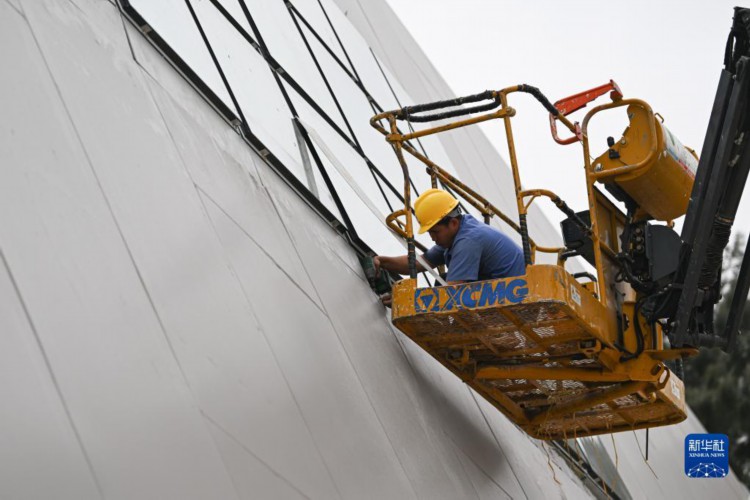 11月25日,工人在位于海南省儋州市的“儋耳追光”驿站工地施工。