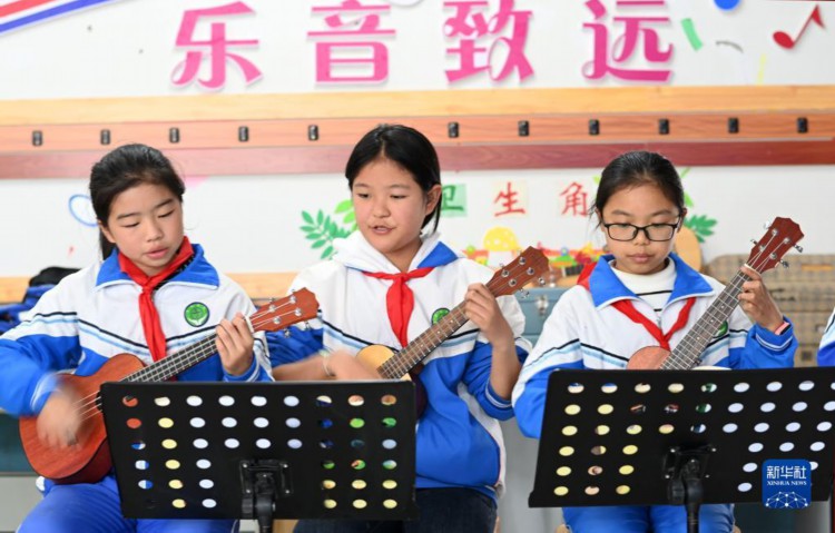 11月29日,学生在贵州省遵义市正安县第二完全小学音乐室学弹乐器。 近年来,贵州省遵义市正安县第二完全小学利用课后服务时间,开展书法、足球、篮球、乒乓球、吉他弹奏等 “双减”课程,培养学生的兴趣爱好,提升学生的艺术修养和运动技能。自“双减”政策落地以来,正安县积极开设种类多样的课后服务活动,促进学生“德智体美劳”全面发展。 新华社记者 杨楹 摄