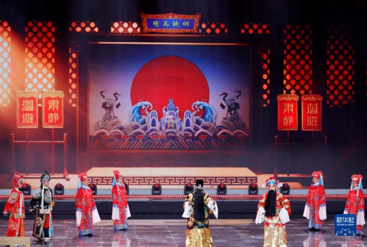 11月29日,演员在表演川剧汇演剧目《铡美案》选段。