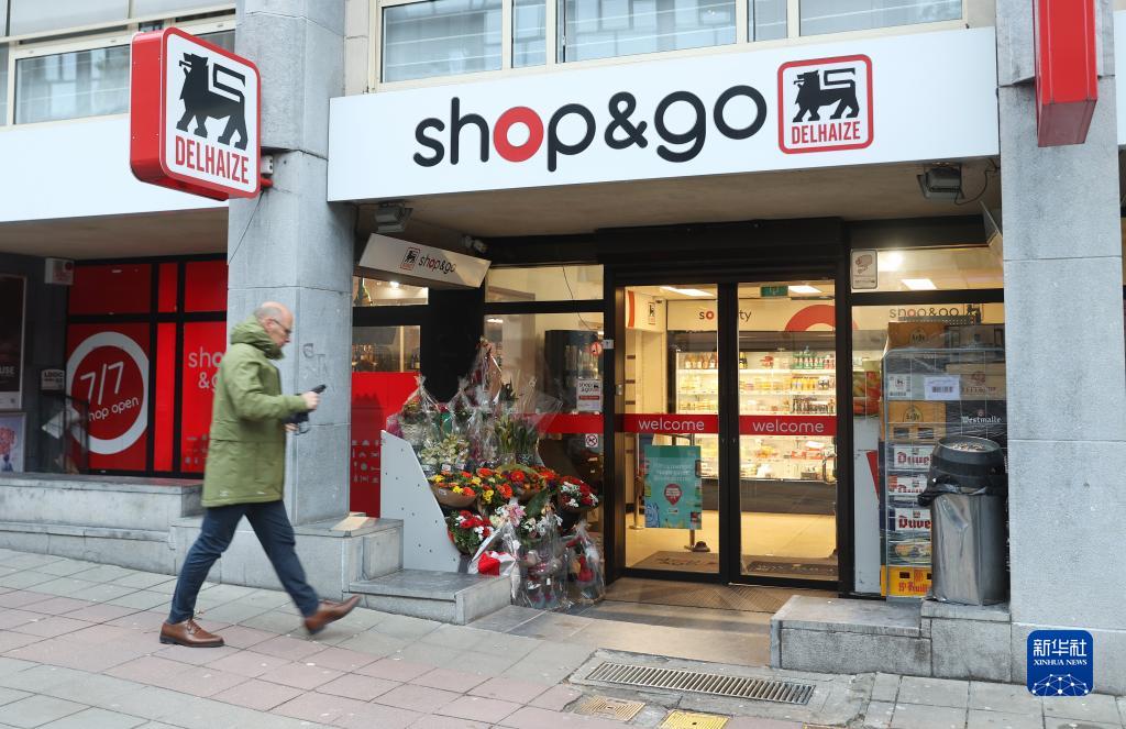 11月30日,在比利时布鲁塞尔,一名男子来到超市购物。新华社记者 赵丁喆 摄
