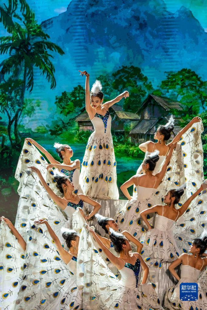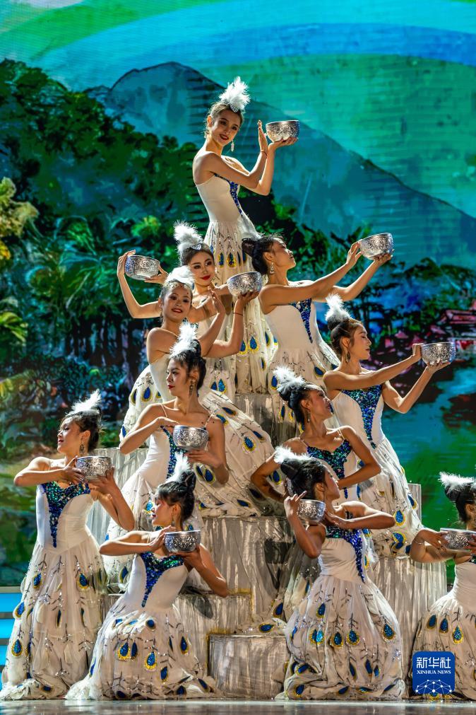 11月30日,来自中国的艺术工作者在表演舞蹈《美丽的传说》。 当日,第十一届澜沧江·湄公河流域国家文化艺术节开幕式暨文艺晚会在云南省西双版纳傣族自治州景洪市举行。来自中国、老挝、缅甸、泰国、柬埔寨、越南6国的艺术工作者表演了风情浓郁的文艺节目,让观众享受了一场视听盛宴。 新华社记者 胡超 摄