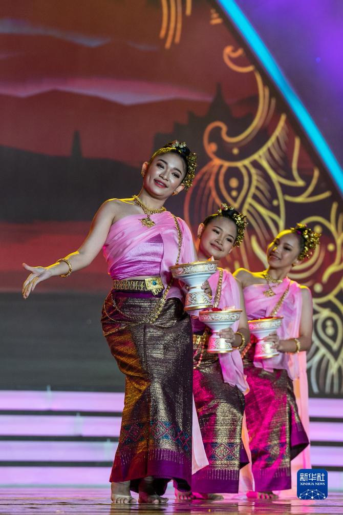 11月30日,来自泰国的艺术工作者在表演舞蹈《迎宾舞》。 当日,第十一届澜沧江·湄公河流域国家文化艺术节开幕式暨文艺晚会在云南省西双版纳傣族自治州景洪市举行。来自中国、老挝、缅甸、泰国、柬埔寨、越南6国的艺术工作者表演了风情浓郁的文艺节目,让观众享受了一场视听盛宴。 新华社记者 胡超 摄