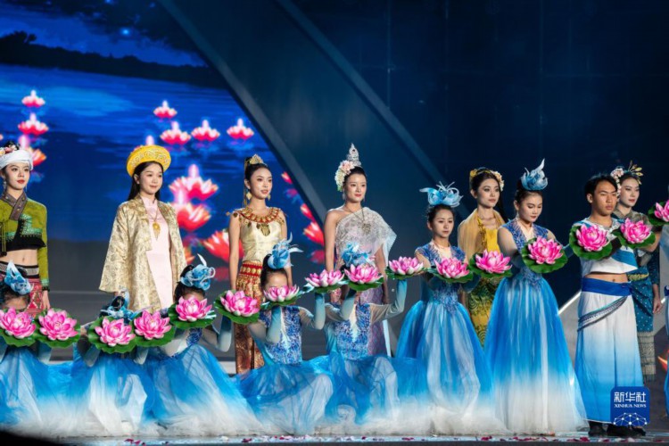 11月30日,来自中国的艺术工作者在表演六国服饰秀《水灯祈愿》。 当日,第十一届澜沧江·湄公河流域国家文化艺术节开幕式暨文艺晚会在云南省西双版纳傣族自治州景洪市举行。来自中国、老挝、缅甸、泰国、柬埔寨、越南6国的艺术工作者表演了风情浓郁的文艺节目,让观众享受了一场视听盛宴。 新华社记者 胡超 摄