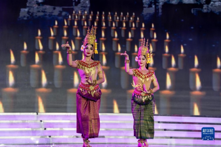 11月30日,来自柬埔寨的艺术工作者在表演舞蹈《仙女舞》。 当日,第十一届澜沧江·湄公河流域国家文化艺术节开幕式暨文艺晚会在云南省西双版纳傣族自治州景洪市举行。来自中国、老挝、缅甸、泰国、柬埔寨、越南6国的艺术工作者表演了风情浓郁的文艺节目,让观众享受了一场视听盛宴。 新华社记者 胡超 摄