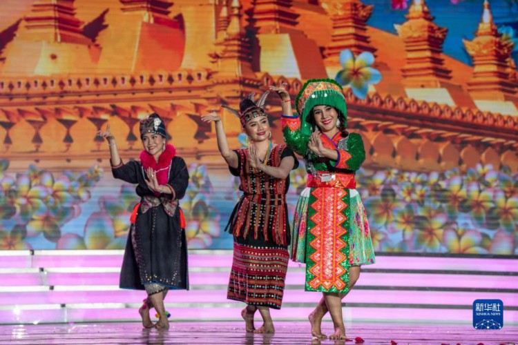 11月30日,来自老挝的艺术工作者在表演舞蹈《老挝民族齐跳舞》。 当日,第十一届澜沧江·湄公河流域国家文化艺术节开幕式暨文艺晚会在云南省西双版纳傣族自治州景洪市举行。来自中国、老挝、缅甸、泰国、柬埔寨、越南6国的艺术工作者表演了风情浓郁的文艺节目,让观众享受了一场视听盛宴。 新华社记者 胡超 摄