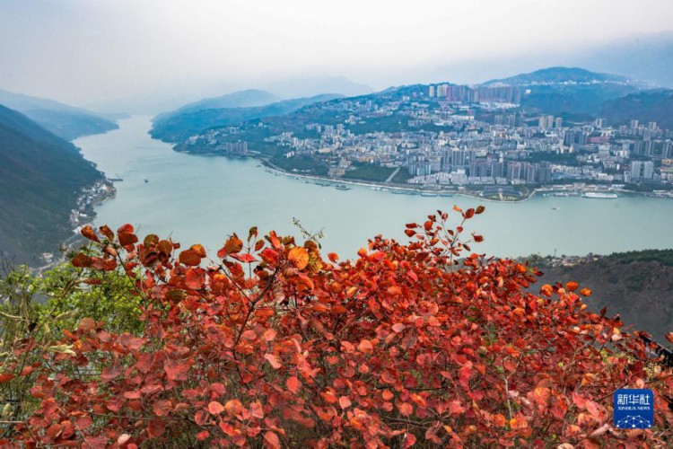 初冬时节,长江三峡重庆市巫山县水域两岸色彩斑斓,红叶似火,美如画卷。