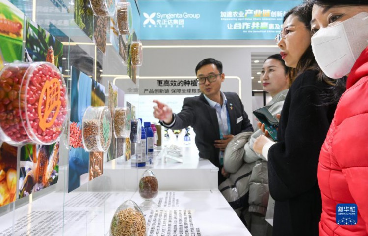 11月30日,在链博会绿色农业链展区,参观者在先正达集团展台前了解种子研发情况。 当日,在首届链博会绿色农业链展区,记者看到这里聚焦农业产业链的核心环节、关键技术及产品,重点展示种子研发、智慧农业应用、现代智能化农机设备和富有地域特色的农业加工品,并配套展示农业相关的金融、物流等服务,为观众展现一幅共创绿色农业未来的新图景。 新华社记者 李贺 摄