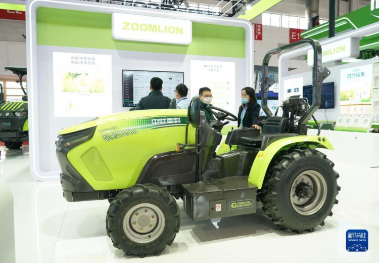 11月30日在链博会绿色农业链展区拍摄的一款电动大棚拖拉机。 新华社记者 任超 摄 |
