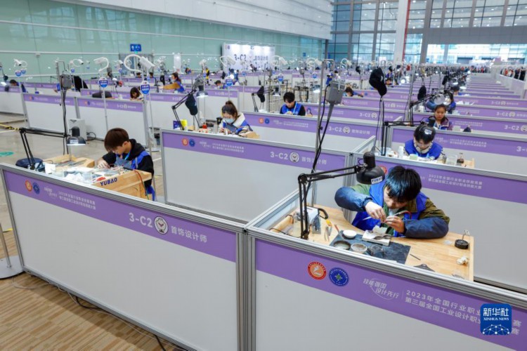12月3日,选手在参加首饰设计师比赛。 当日,由人力资源和社会保障部、中华全国总工会、中国轻工业联合会共同主办的“2023年全国行业职业技能竞赛——第三届全国工业设计职业技能大赛决赛”在四川宜宾市开幕。大赛以“技能强国 设计先行”为主题,共设首饰设计师、家具设计师、陶瓷产品设计师、鞋类设计师四大赛项。 新华社记者 沈伯韩 摄