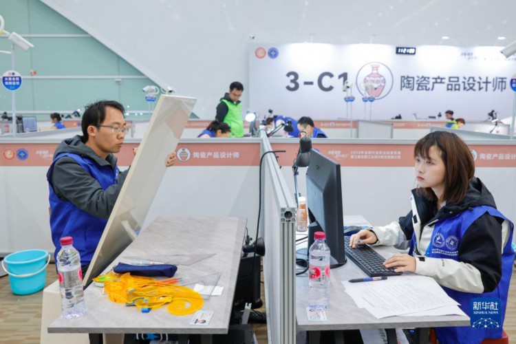 12月3日,选手在参加陶瓷产品设计师比赛。 当日,由人力资源和社会保障部、中华全国总工会、中国轻工业联合会共同主办的“2023年全国行业职业技能竞赛——第三届全国工业设计职业技能大赛决赛”在四川宜宾市开幕。大赛以“技能强国 设计先行”为主题,共设首饰设计师、家具设计师、陶瓷产品设计师、鞋类设计师四大赛项。 新华社记者 沈伯韩 摄