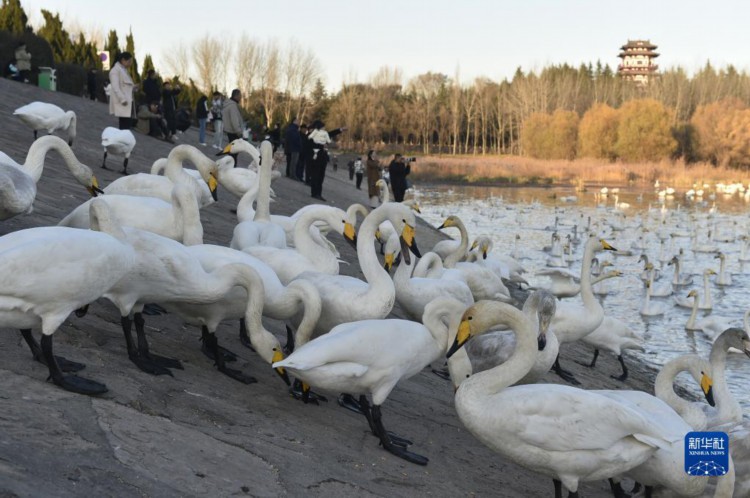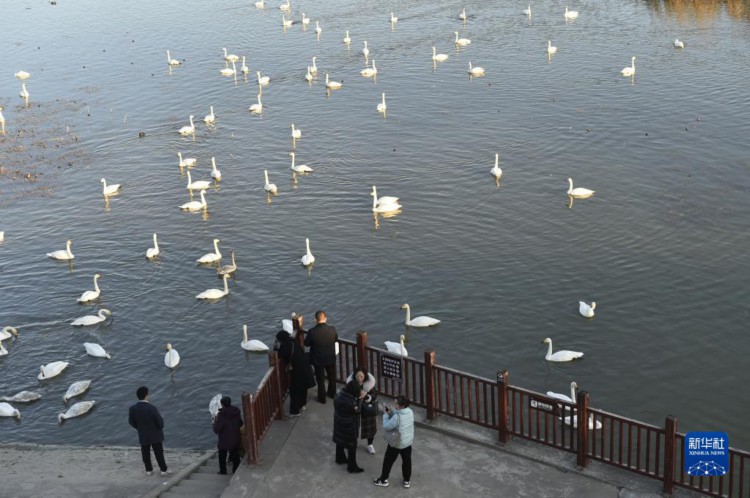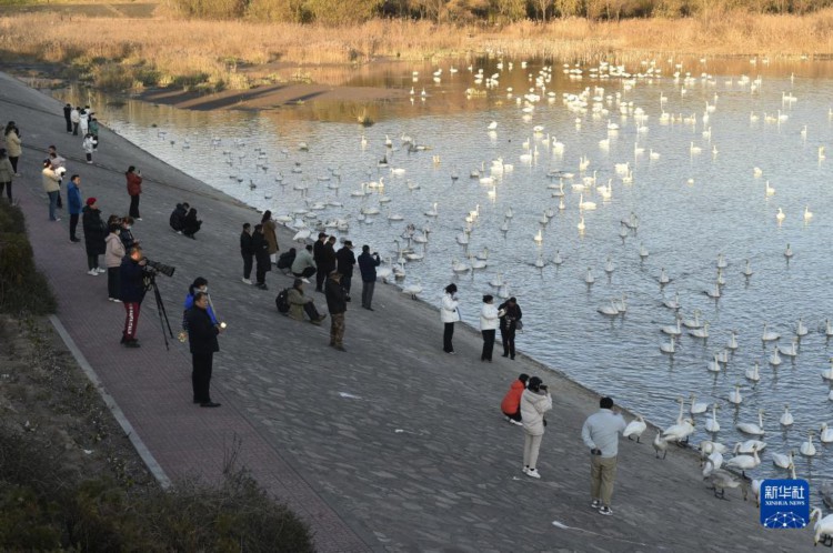 12月1日,游人在三门峡市天鹅湖国家城市湿地公园观赏天鹅。 河南省三门峡市凭借适宜的气候、优良水生态和安全的环境,每年秋冬之际成为我国境内大天鹅栖息越冬的主要目的地之一。 新华社记者 鲁鹏 摄