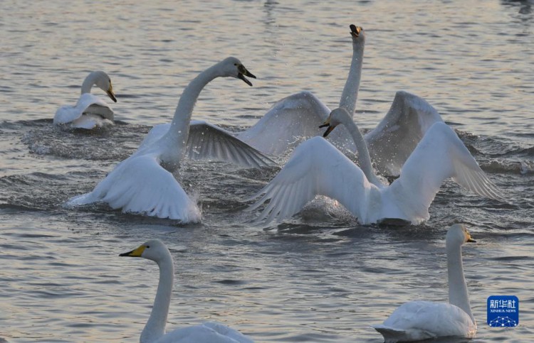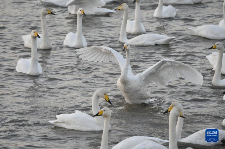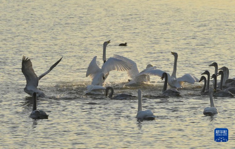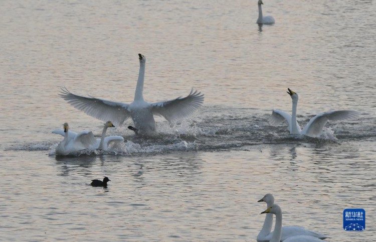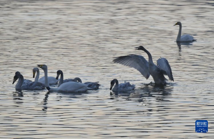 12月2日在三门峡市天鹅湾景区拍摄的天鹅。 河南省三门峡市凭借适宜的气候、优良水生态和安全的环境,每年秋冬之际成为我国境内大天鹅栖息越冬的主要目的地之一。 新华社记者 鲁鹏 摄