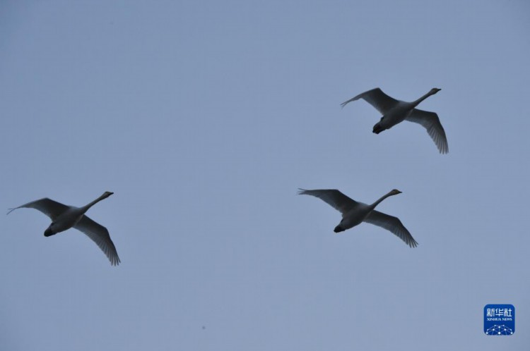 12月2日,天鹅在三门峡市天鹅湖国家城市湿地公园附近飞翔。 河南省三门峡市凭借适宜的气候、优良水生态和安全的环境,每年秋冬之际成为我国境内大天鹅栖息越冬的主要目的地之一。 新华社记者 鲁鹏 摄