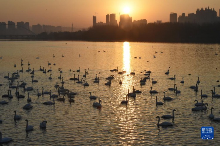 12月1日在三门峡市天鹅湖国家城市湿地公园拍摄的天鹅。 河南省三门峡市凭借适宜的气候、优良水生态和安全的环境,每年秋冬之际成为我国境内大天鹅栖息越冬的主要目的地之一。 新华社记者 鲁鹏 摄